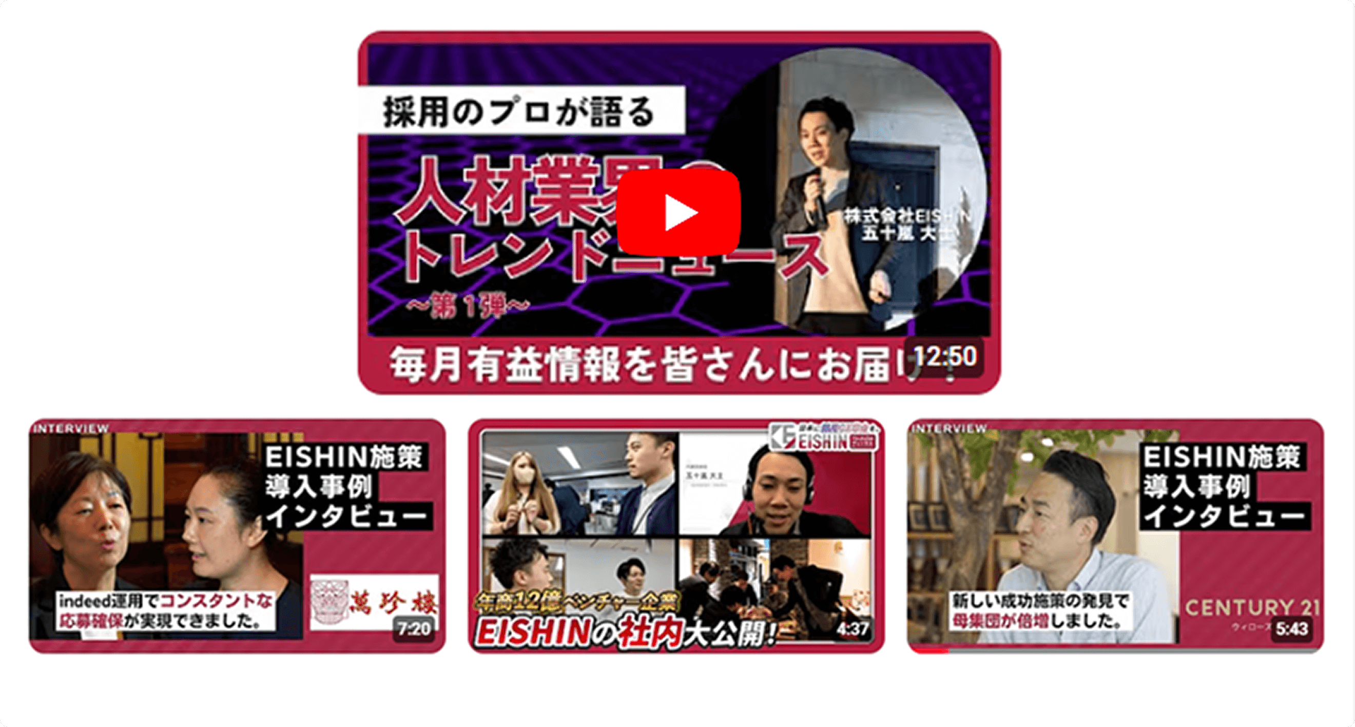 髙野さん:最初は、営業の方からお電話を受けたように記憶しています。その際に、EISHINが媒体運用などだけでなくクリエイティブ制作も請け負っていると聞き、興味を持ちました。正直に申し上げて、当初のご提案は「うーん……」という印象でした(笑)。ただ、こちらからの要望に対して細かく見積もり予算や施策内容の調整をしていただけて、弊社のあまり豊富でない採用予算の中で、最大限の効果を出せるように動いていただけたことが嬉しかったですね。加えて、たまたま弊社の近隣にある企業さんでのクリエイティブ制作事例をお持ちだったので、そちらを見せていただけたことも大きなきっかけでした。シンプルながら非常にきれいで見やすくまとまったクリエイティブで、弊社のクリエイティブ制作に関するイメージが明確にわいたことが決め手だったと思います。