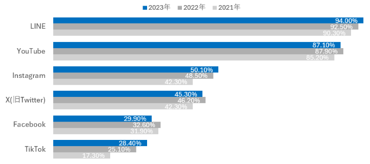 FacebookとInstagramを擁するMetaは、国内でも月間アクティブユーザーが非常に多く(Instagram:約4,800万人、Facebook:約2,600万人 ※2023年時点)幅広い年齢層への接触が可能です。