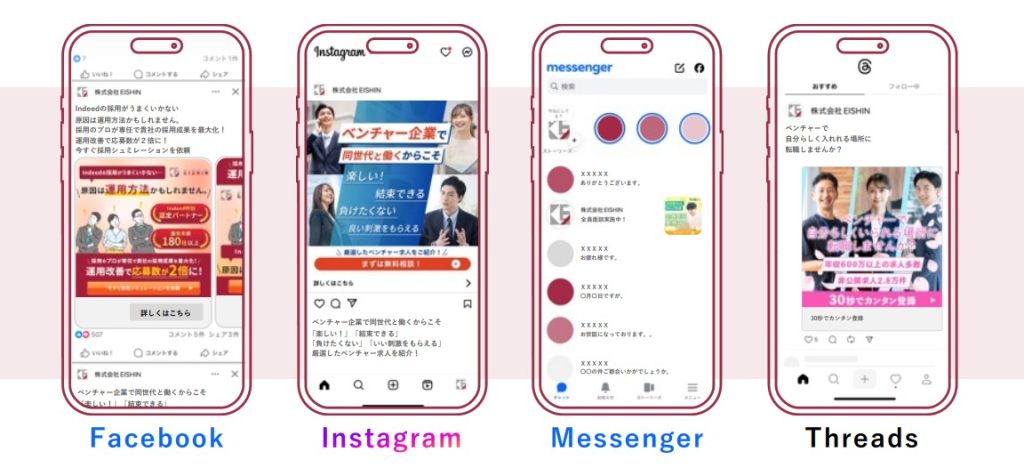 この媒体の特徴を利用し、広告運用の最終的なゴールを採用に据えつつ、副次的な企業ブランディング効果を狙ってMeta広告を利用している企業も多いです。