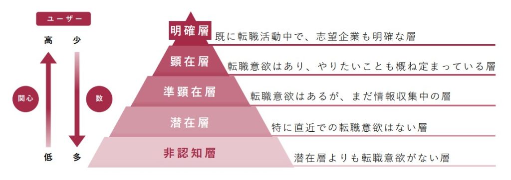 これによって、転職時期を迎え、ユーザーが潜在層から顕在層になったときに、自社のことを調べて媒体からの閲覧数や流入数が増え、結果的に間接的効果による採用につながっていきます。