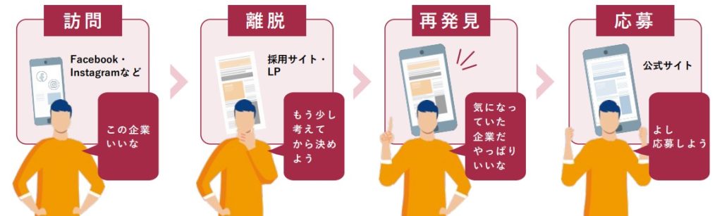 広告からの応募に直結しなかったユーザーに対して情報を再度届けることができるため、CVR(応募率)やLTV(応募後の定着)を高めやすいのが特徴です。