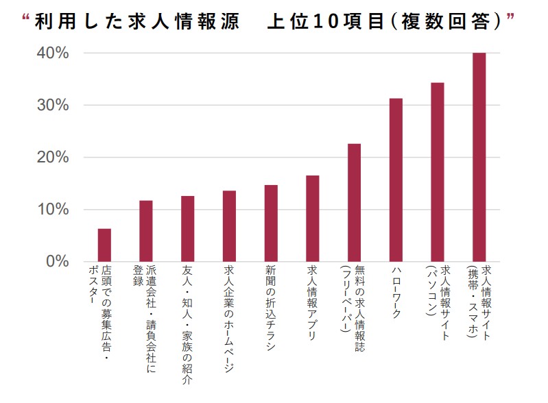 求職や転職においても、PC版よりもスマートフォン版の求人情報サイトの利用率が高く、求人情報アプリを合わせると、全体の6割近くをスマートフォンによる求職活動が占めています。(※3)